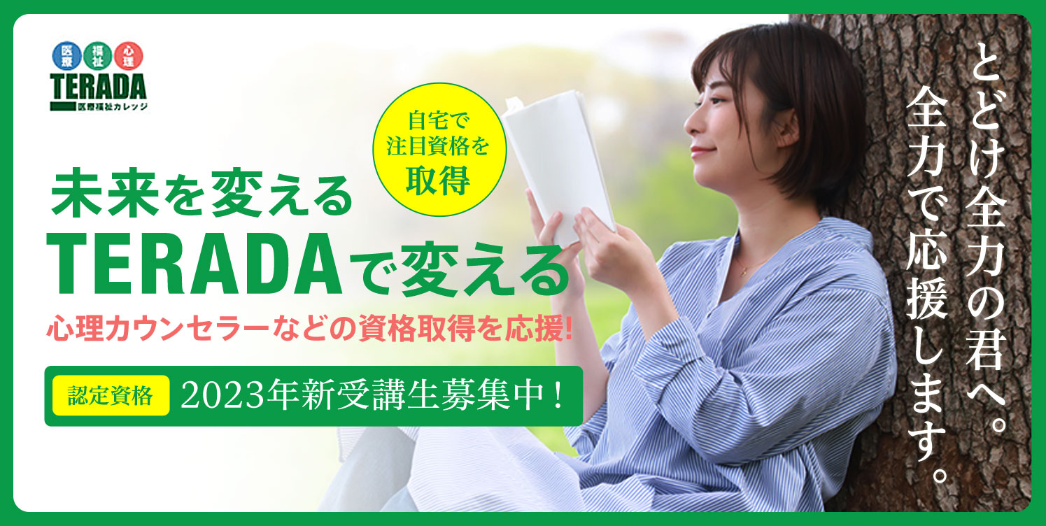 心理カウンセラーをはじめ医師事務作業補助者や看護助手などの現場で活躍する人材となるためには専門知識が不可欠です。TERADA医療福祉カレッジは【心理学・心理カウンセラー】【医師事務作業補助者】【看護助手】などの資格取得を目指すための通信教育を行っています。 TERADA医療福祉カレッジではそれぞれ、【心理学・心理カウンセラー】では文部科学省後援こころ検定やメンタルケア心理士、アニマル・ペットロス療法士などのこころのカウンセラーを目指すための講座を、【医師事務作業補助者】では、医療福祉情報実務能力協会認定の認定医師秘書TMの資格取得を目指し、医療機関のコ・メディカルとして活躍する人材となるための講座が、【看護助手】では、メディカルケアワーカー®講座があり、医療福祉情報実務能力協会認定のメディカルケアワーカー®の資格取得を目指し、医療現場で看護補助従事者として看護師の補助をするための知識と技術を学ぶことが可能です。